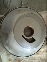 (5)剪裁制作表面积大于隔板端面******直径的0.5mm厚度不锈钢带,以叶轮外径尺寸为基准冲裁内孔。不锈钢带平面度±0.10mm。